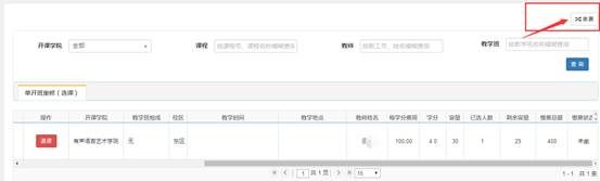 4.确定好课程名后,拉到最右边,看清楚教师姓名,确定无误后再点击“选课”;