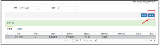 5.选课后,点击右上角 “缴费”按钮;
