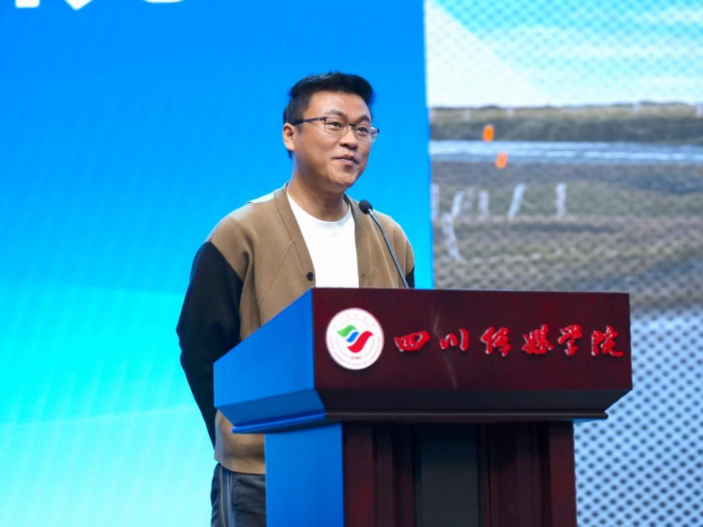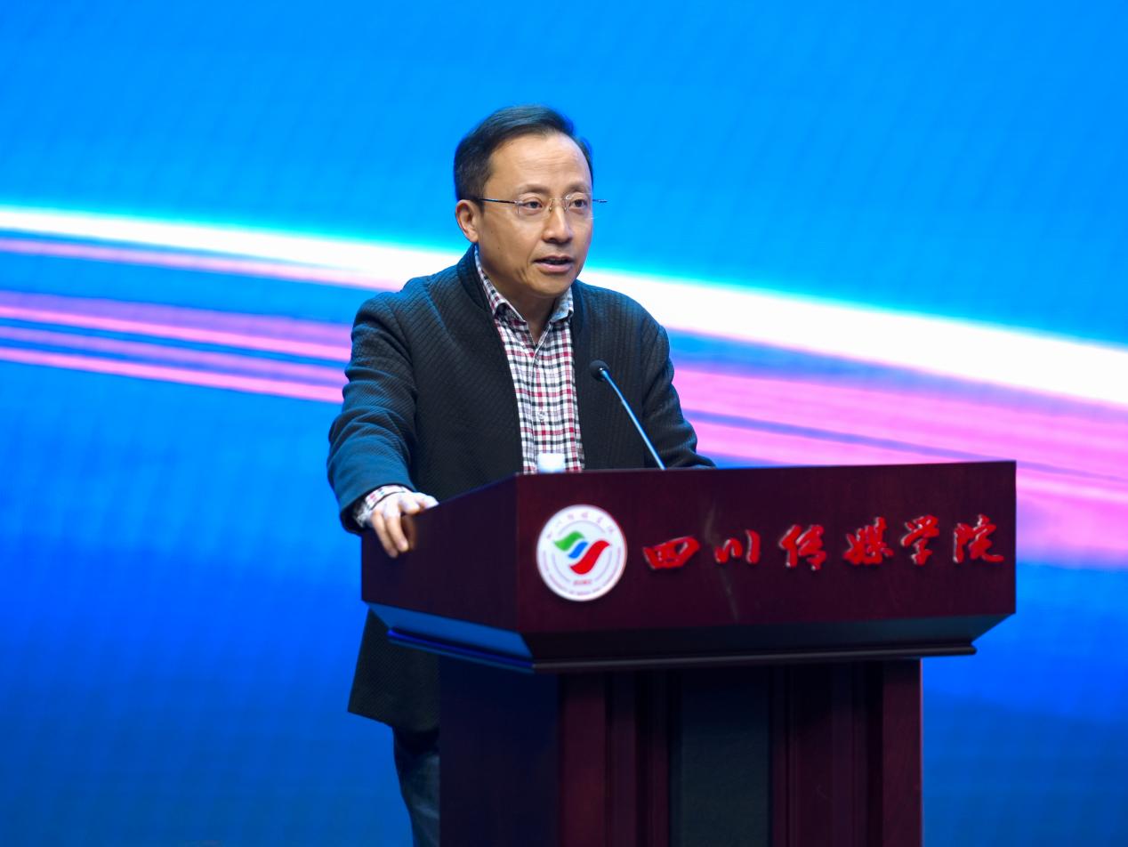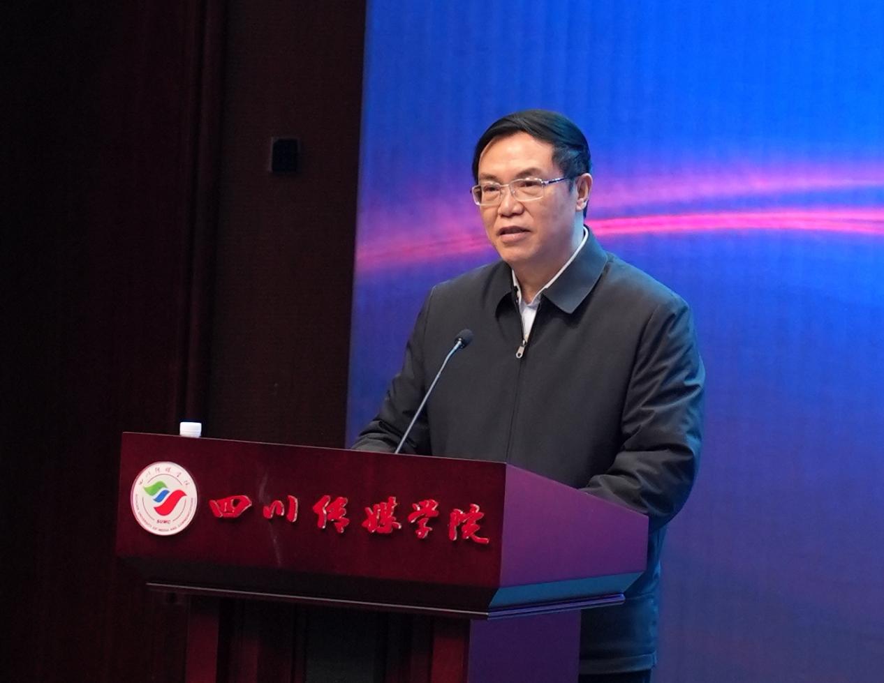 四川传媒学院党委书记何建平致辞,表示四川传媒学院与北京中视星驰文化传媒有限公司共建网络视听产业学院,将以网络视听节目创作、网络短视频及短剧创作与运营为主要专业方向,推行教学模式改革,培养适应智媒时代需求的高素质应用型传媒人才。