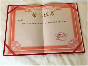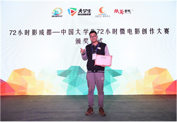 2015年11月16—18日,由中国网络视听委员会、成都电视台组织的“72小时影成都——全国大学生微电影大赛”于成都圆满举办。经过激烈的海选及初、复赛评选,最终选定北京电影学院、上海戏剧学院、中国传媒大学、四川大学、马来西亚林国权大学、四川传媒学院、电子科技大学等十二支学生团队入围最终决赛,我院学生朱赟最终一枝独秀,在官方要求的72小时内“限时创作”,按规定内容、规定情景完成作品的前、中、后期,朱赟作品《豆香》获得唯一的一个“一等奖”,奖金5万元。