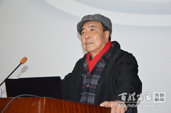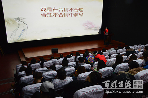 12月18日下午,四川传媒学院电影电视学院大讲堂上,著名川剧表演艺术家杨昌林先生,结合大屏幕显示出的字幕,为前来听川剧艺术课的150来名师生们介绍着川剧。