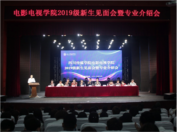 四川传媒学院电影电视学院学院于2019年9月18日晚7:00在学校大型演播厅举办2019级新生见面会暨专业介绍会,出席本次大会的有张乐平副院长、李杨书记、吴建副院长、李晓川副院长、徐先贵教授、贺莉娅副书记、朱晓彬副书记、李佳木教授、白山杉教授、王江教授、院长助理赵耘曼、院长助理陆薇等。