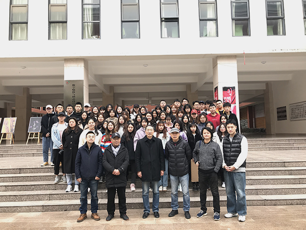 2019年“传媒之光“系列人像摄影作品展开幕式完满结束,学校领导,摄影系老师与参展同学们一起合影留念