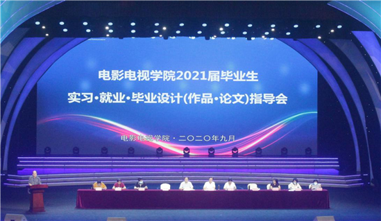 为进一步推动毕业生工作高质量有序开展,2020年9月8日19:00,电影电视学院2021届毕业生实习·就业·毕业论文(设计·作品)动员会在学校艺体中心举行。副院长张乐平教授,党总支书记李杨,副院长吴建教授、李晓川教授,党总支副书记贺莉娅、朱晓彬,院长助理赵耘曼、陆薇,各专业主任,学院2021届毕业指导教师及2017级学生参加会议。会议由学院教学委员会主任徐先贵教授主持。全场人员佩戴口罩,隔位就座。