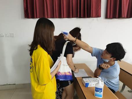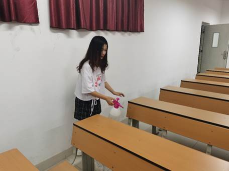据了解,每次上课前,付斌老师会提前半小时进入教室,自费购买了消毒液、免洗手凝胶、额温枪,组织班长对教室内空间进行消杀,所有同学进入教室前均需测量体温,自主使用免洗手凝胶,确保教室通风。另外,付斌老师还要求学生保持安全距离,提高疫情防控意识。