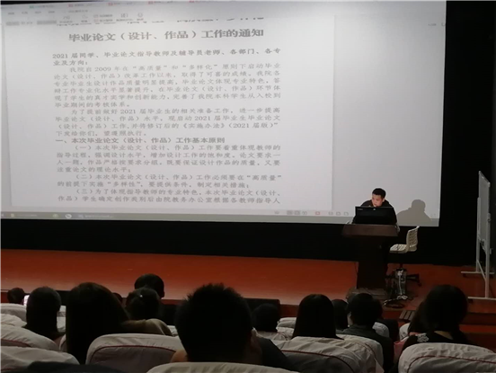 随后,办公室主任吴道天介绍了近期教学重点工作,强调2020级课程教学大纲制定工作、毕业论文(作品·设计)及毕业实习任务书下达工作需按时推进,并详细讲解了2020级课程大纲、毕业论文任务书、毕业实习任务书及相关表格资料的具体填报要求。