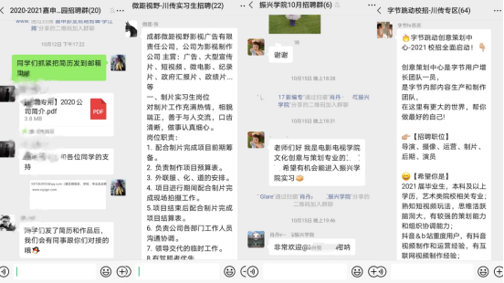 本月共举行线上及线下招聘会五场,据相关负责人介绍,因流动性大,这几家单位对导演、摄像、运营、制片、后期及演员需求巨大。