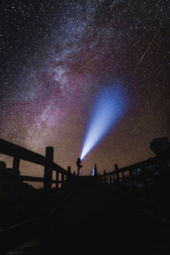 《双子座流星雨》:2020年11月,我(杨澜青)驱车前往冰山梁拍摄双子座流星雨。当晚看到了十几颗流星,从眼睛前面划过,十分美丽,我也趁着流星雨拍下了这张自拍照。