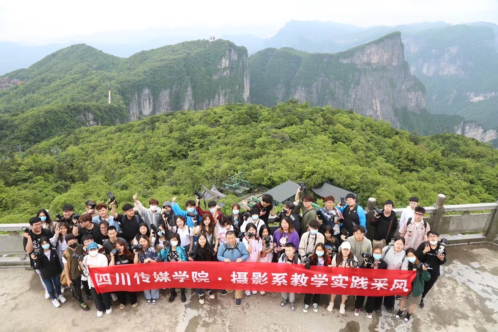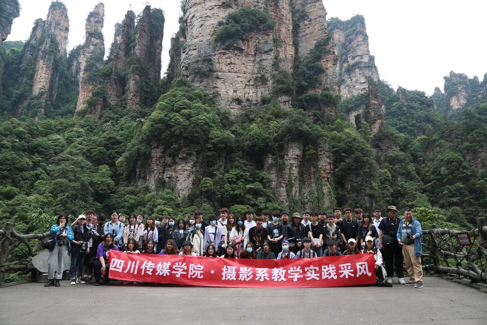 2021年5月16日-27日,摄影系2020级摄影本科6班、2020级摄影摄像技术专科1班共49名学生在杨静、宁风、姜婷三位老师的带领下,顺利完成了为期两周的湖南张家界采风实践课程,全员平安返回学校。