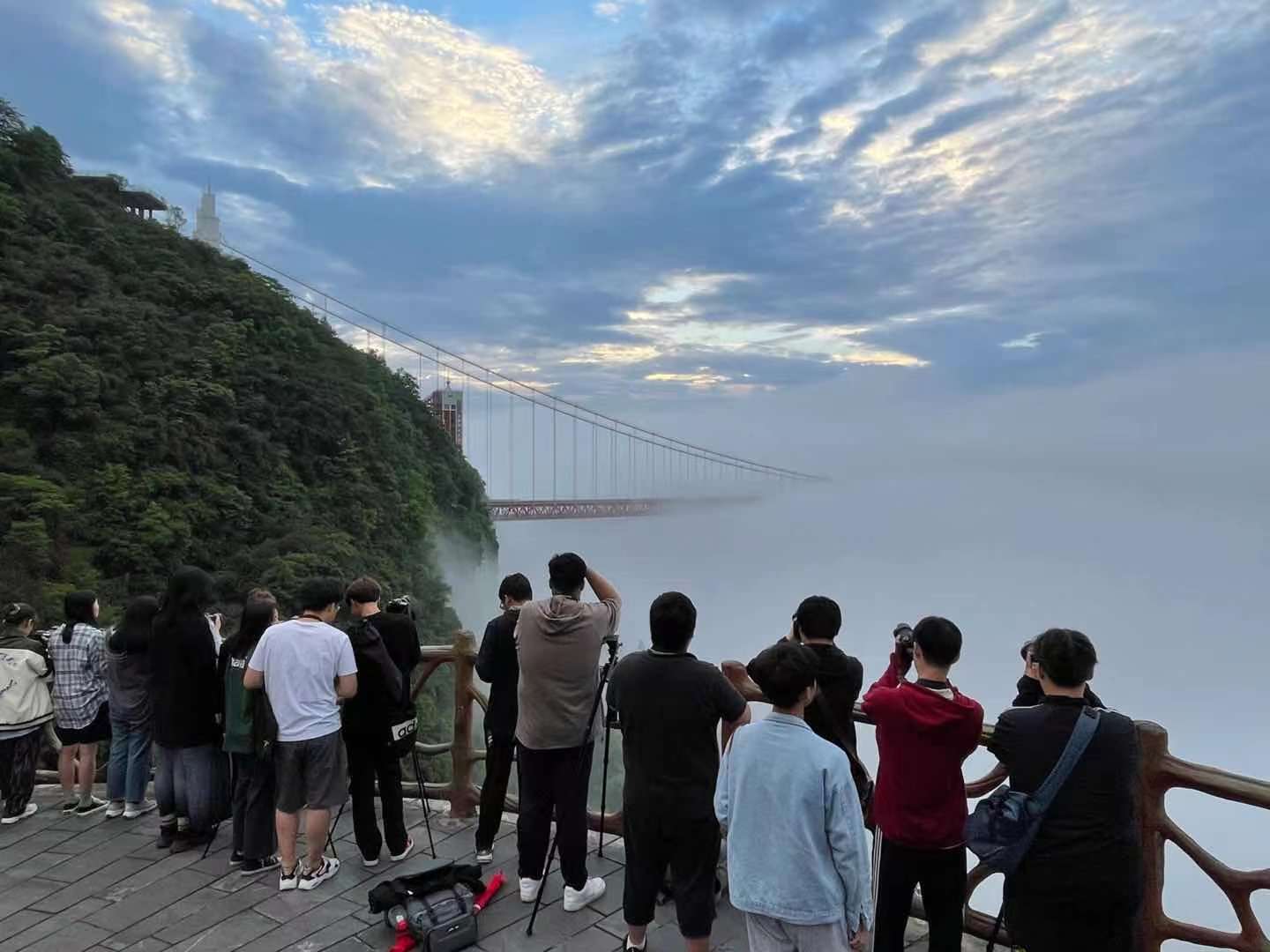本次采风路线为经典的湘西探索之旅,我们从成都乘坐列车出发,依次前往凤凰古城、矮寨、芙蓉古镇、张家界国家森林公园进行拍摄。由于季节原因,全线几乎每天都在下雨。同学们非常团结,互相帮助,克服了长途跋涉加连续淋雨的不适,跟着老师,背着相机早出晚归,或是为了等待山顶五点的拨云见日,或是为了守候雨雾散去得见缥缈仙山。这一条线不仅让同学们感受到祖国山河壮阔,认识到湘西地区少数民族建筑饮食特色,更是通过拍摄矮寨大桥这样的伟大交通工程,让同学们对中国开路先锋无比佩服,民族自豪感油然而生。