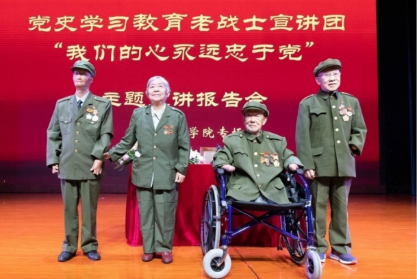 6月9日下午,四川省革命伤残军人休养院老战士宣讲团一行在学校艺术交流中心召开了“我们的心永远忠于党”主题宣讲报告会。我校领导、党员、干部、师生代表近千人参加了此次报告会。电影电视学院党员师生代表在参与此次党史学习的活动中,进一步真切感受到爱国主义和革命英雄主义情怀的伟大力量。