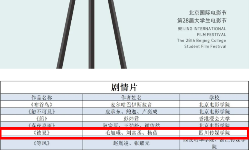 我院两部学生作品同时入围第28届北京大学生电影节