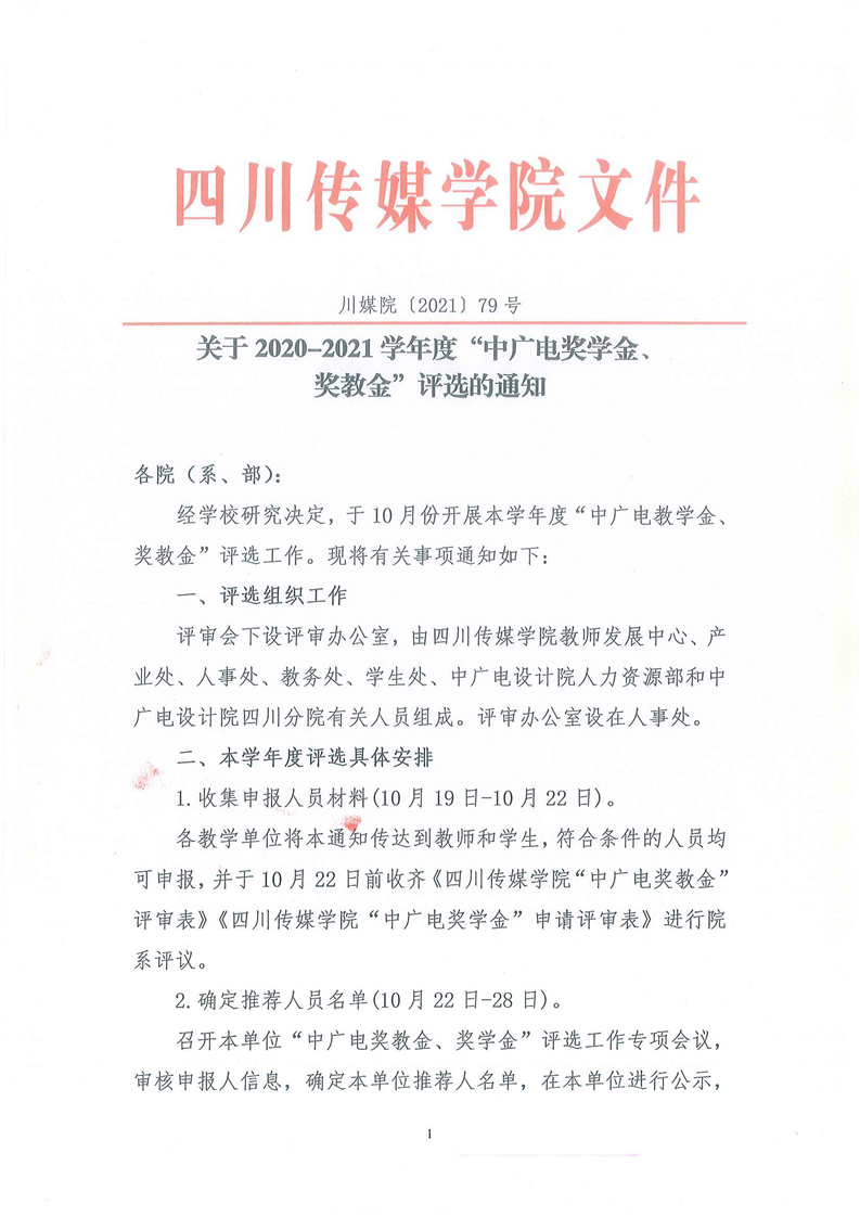 关于2020-2021学年度“中广电奖学金、奖教金”评选的通知