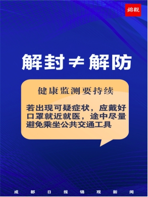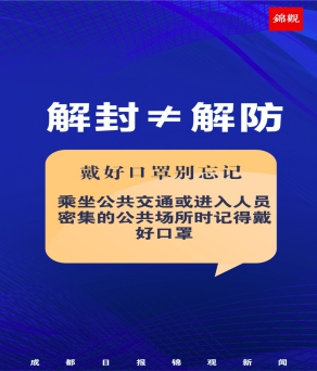 成都市解除风险,同学因恢复正常生活有激动的心情是可以理解的,但疫情归零的成功,无疑是由各位医护人员、街道工作者、公安民警、志愿者夜以继日的辛劳付出以及无数市民配合防控工作共同创造的。为了守护这来之不易的“重回美丽繁华成都”的成果,我们仍要继续进行严格的校内防疫工作,摄影学院将积极配合学校响应成都市“解封不解防”的要求,继续执行校内常态化疫情防控,望我院学生从己做起,规范佩戴口罩,控距离,不聚集,保持良好防疫习惯。