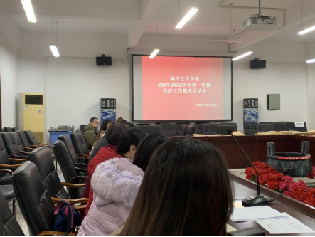2021年12月22日下午15:00,编导艺术学院召开2020-2021学年第一学期思政工作期末总结会。编导艺术学院党总支书记李杨、副书记王禹明、副书记贺莉娅、副书记朱晓彬,编导艺术学院分团委书记莫诚成,编导艺术学院全体辅导员参加此次会议。