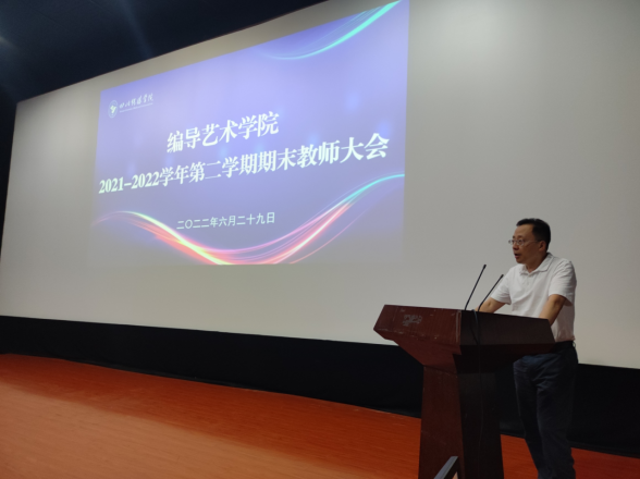 为总结本学期各项工作,做好下学期工作动员,6月29日14:30,编导艺术学院在音视频创意中心101召开了期末全院教师大会,四川传媒学院校长助理、编导艺术学院院长熊志冲,编导艺术学院副院长吴建、王雪梅、张志斌,艺术总监张乐平,党总支副书记王禹明、贺莉娅等学院领导及编导艺术学院全院教师与会。会议由张乐平总监主持。
