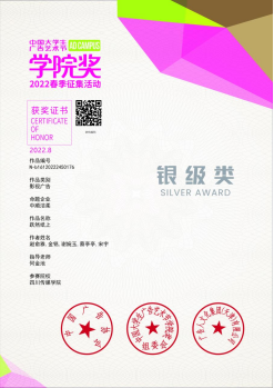 近日,中国大学生广告艺术节学院奖2022春季作品征集活动荣誉颁发盛典在天津圆满落幕。编导艺术学院2019级广播电视编导专业学生赵俞雅、金铭、谢宛玉、蔡亭亭、宋宇创作的《跃然纸上》荣获全国银级类奖,《非你莫“薯”》荣获全国铜级类奖,刘彦麟、罗雨欣、龙朵儿、蒋燕妮、王昊文、李俊羲、姚文昭、袁希慧、刘彦麟、刘子涵等同学创作的10项作品荣获“优秀奖”,王悦等同学创作的作品获“入围奖”,指导老师何金池被授予银奖指导教师荣誉。