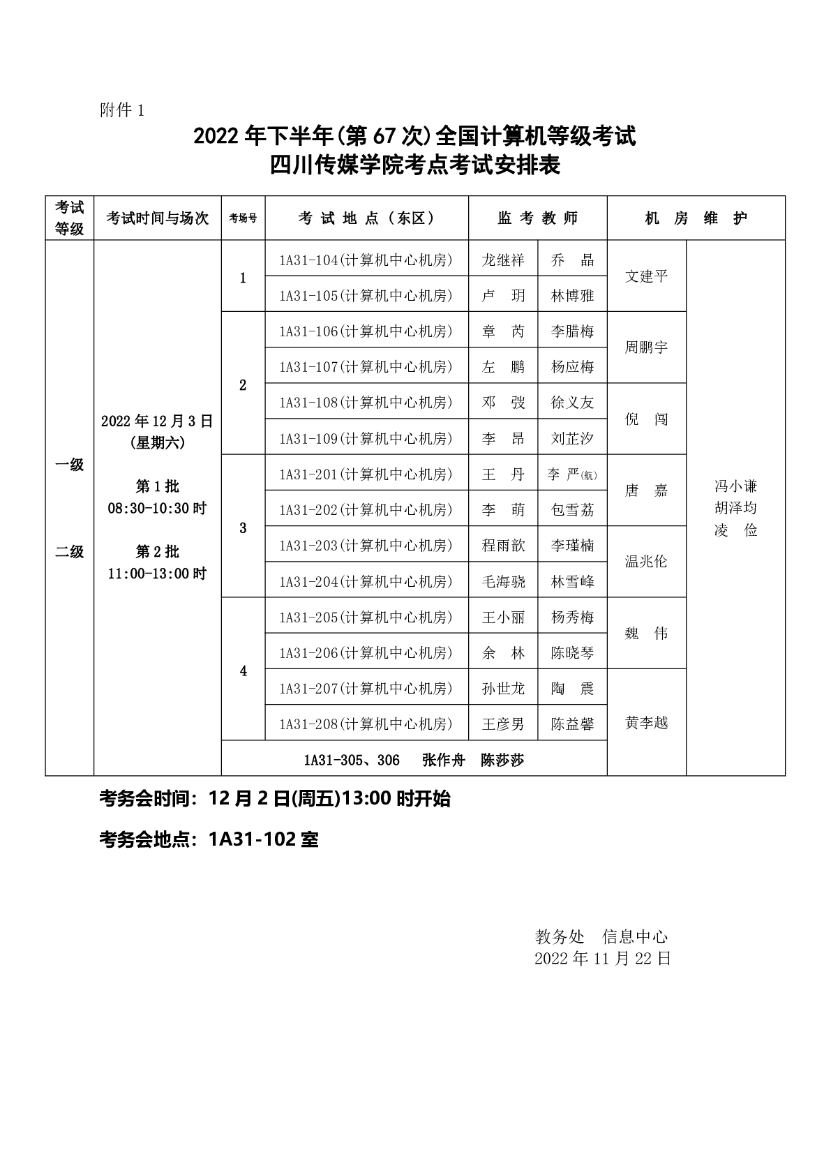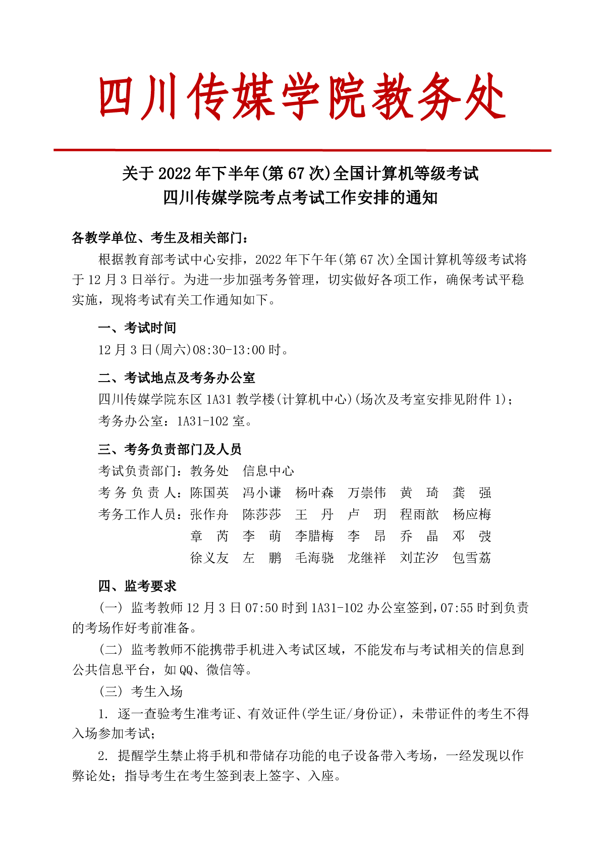 关于2022年上半年(第67次)全国计算机等级考试四川传媒学院考点考试工作安排的通知