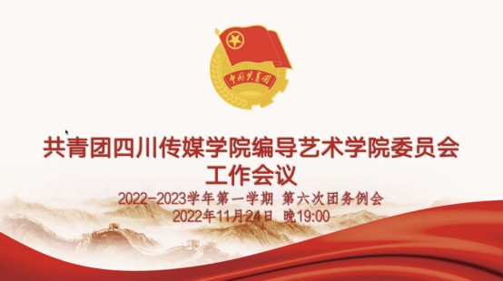 2022年11月24日晚19:00,共青团四川传媒学院编导艺术学院委员会2022-2023学年第一学期第六次会议在线上召开。分团委书记莫诚成及大二、大三各学生负责人出席此次会议。