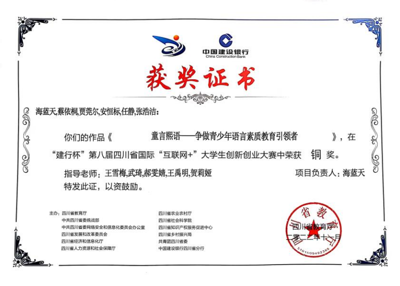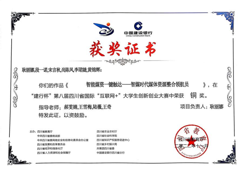 据悉,“建行杯”第八届四川省国际“互联网+”大学生创新创业大赛旨在深入贯彻落实习近平总书记关于教育的重要论述,大力培育和提升学生的创新精神、创业意识和创新创业能力,持续壮大创新创业生力军,努力开创高校毕业生更高质量的创业就业新局面。我院始终致力于培养具有创新精神的应用型人才,积极组织学生参与创新创业比赛,以赛促创,激发学生的开拓进取精神,孵化学生的创意创业项目,持续提升人才培养的新度。