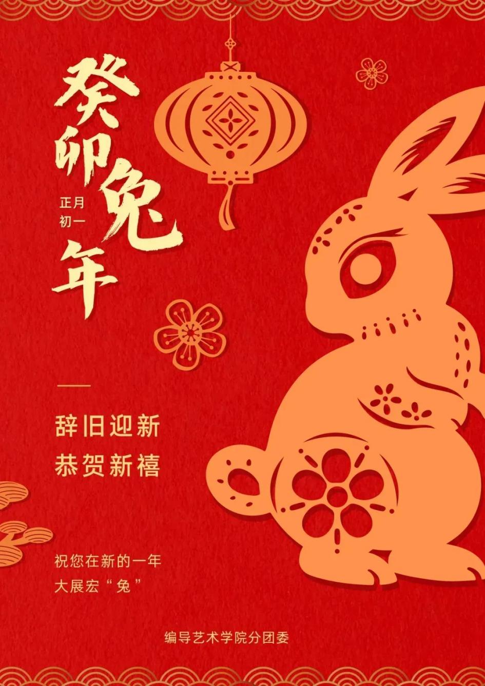 新春佳节已到来,衷心向四川传媒学院编导艺术学院的老师、莘莘学子和一直以来支持我院分团委工作的朋友们致以新春祝福,祝大家身体健康、工作顺利、生活愉快、兔年吉祥!