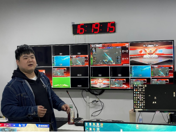 公司安排专人向随行同学们介绍了切换台、音控台、现场包装等各类设备,让大家了解到不同游戏的不同导播模式以及电竞直播与普通晚会晚会直播方式的不同之处,绿幕区的作用以及每个直播岗位的工作流程,让对直播行业有兴趣的编导专业同学对此有了更加深入的了解。