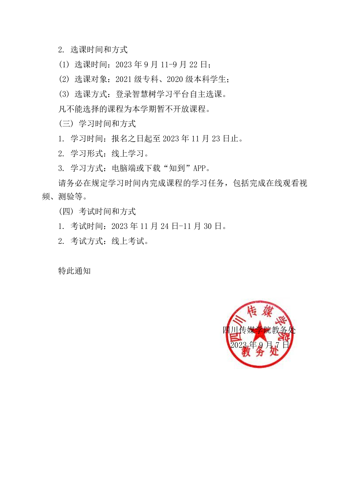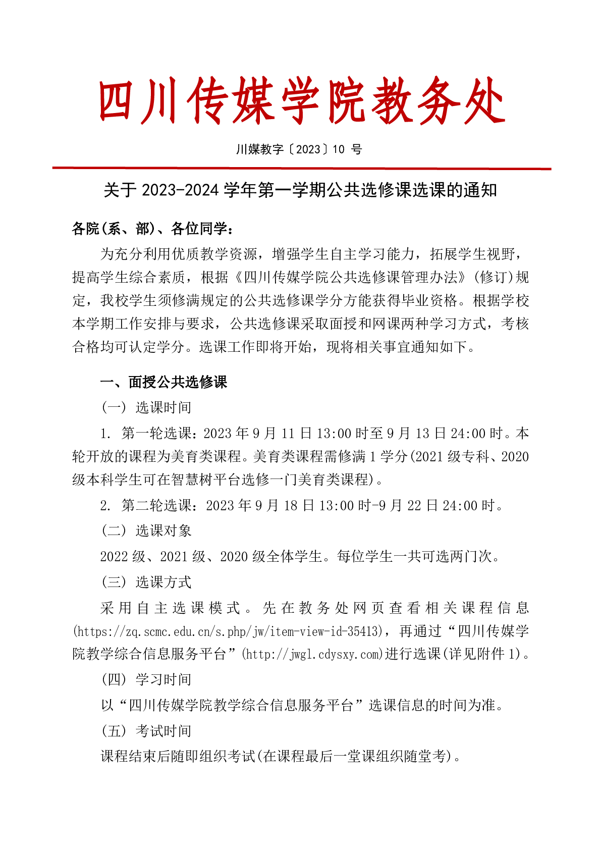 四川传媒学院教务处 关于2023-2024学年第一学期公共选修课选课的通知