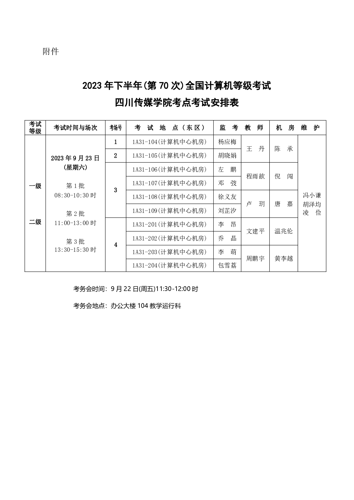关于2023年下半年(第70次)全国计算机等级考试四川传媒学院考点考试工作安排的通知