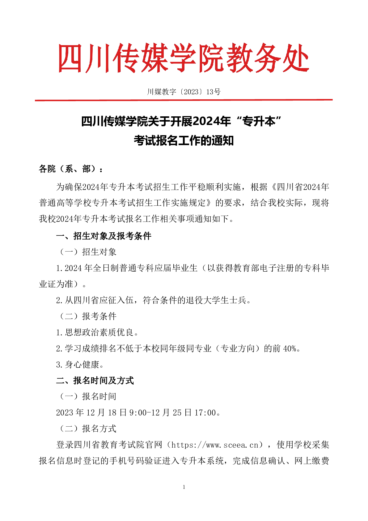 四川传媒学院关于开展2024年“专升本”考试报名工作的通知