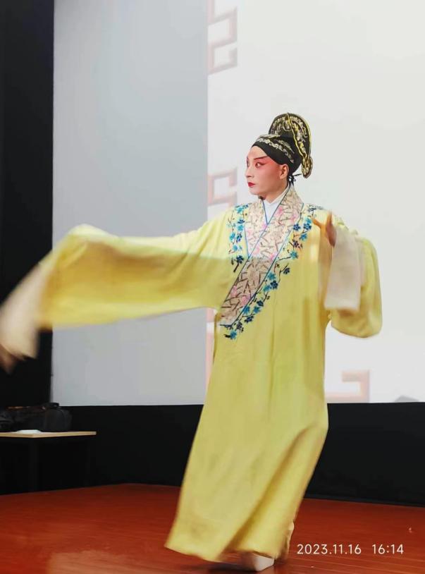 在讲座中,刘洁老师回溯了京剧的历史演变,介绍了戏曲基本专业知识,并以表演示范、互动方式介绍京剧的形成、艺术特征、剧目和行当等,通过带领师生观赏剧目《拾玉镯》、现场表演《春闺梦》等国粹京剧,让师生对京剧的艺术文化具有初步的认识和了解,感受京剧这一优秀传统文化的无穷魅力。