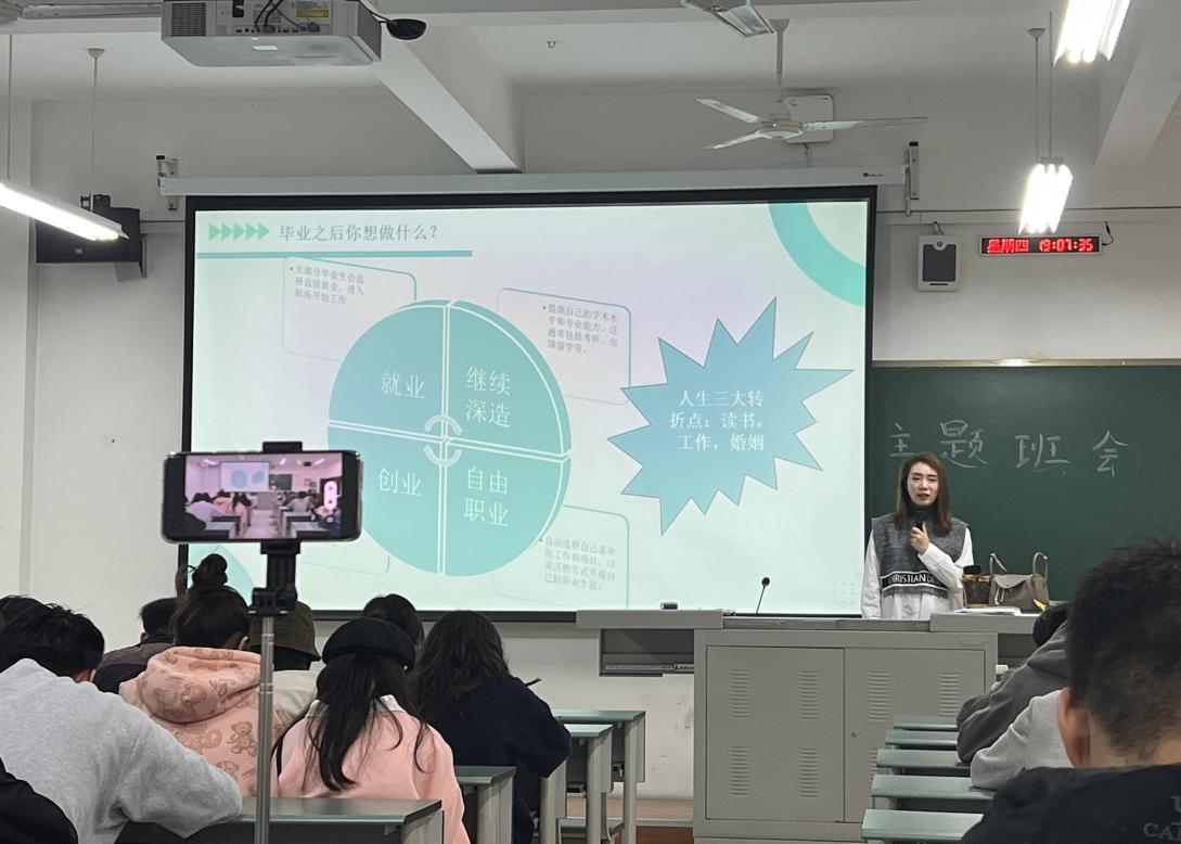11月2日18:30,编导艺术学院2021级广播电视编导本科班同学们在A8教学楼310聆听了奇瑞公司以“校企联盟新征程·新媒体赋能就业”为主题的讲座。