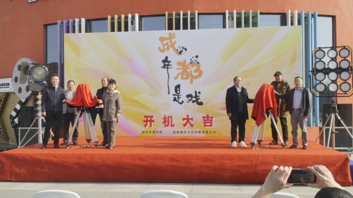 最后,四川省广播电视局、四川传媒学院、出品方领导共同为摄影机揭幕。