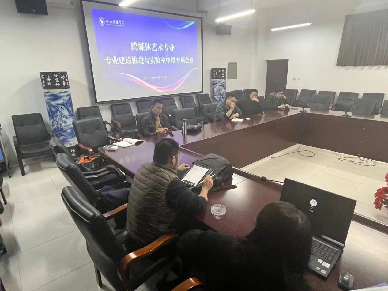 2023年11月27日,跨媒体艺术专业建设推进与实验室申报专项会议在A8-206顺利召开,会议由四川传媒学院编导艺术学院副院长、跨媒体艺术专业主任张志斌主持,该专业教研室教师及学院实验实训中心何仁伟副主任参会。