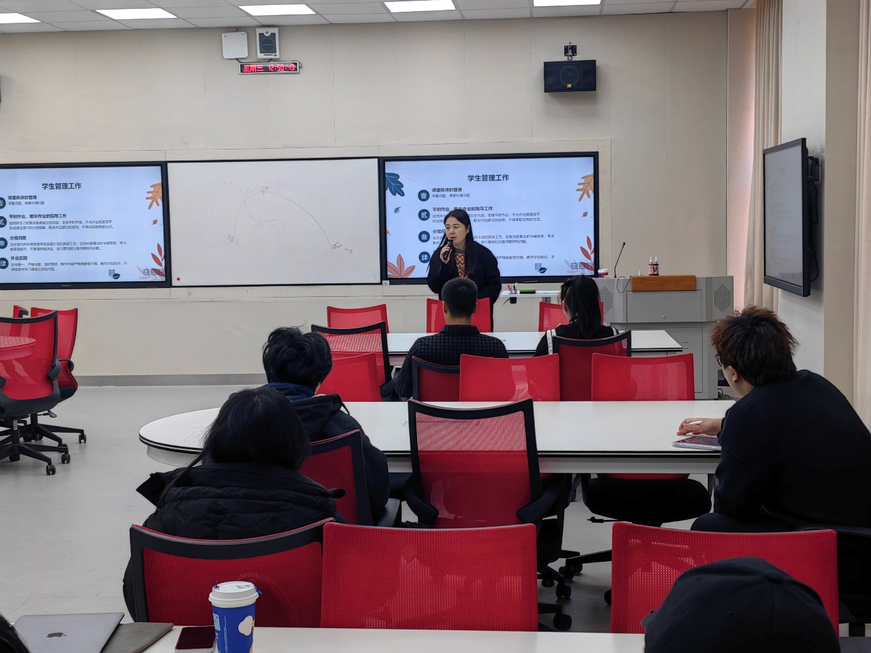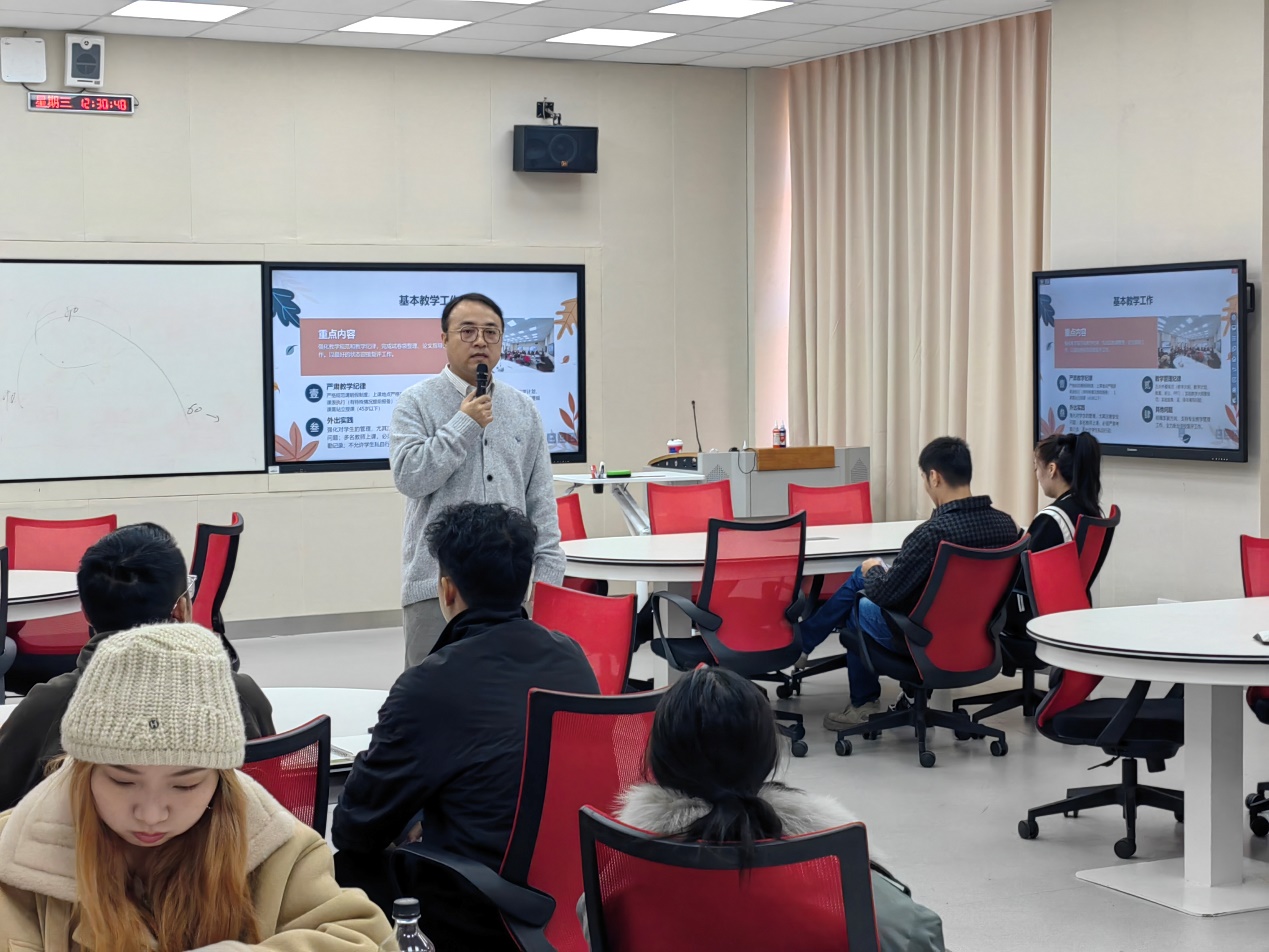 会议伊始,专业主任付斌老师将教师发展和评估工作相结合,提出“以科研带教研,以教研促教改”,鼓励青年教师在教育教学工作中自我提升,对于教学内容和课堂纪律应严格把关。