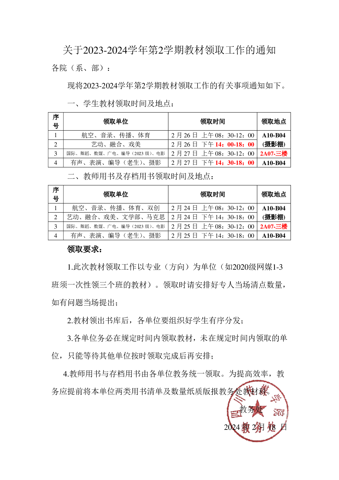 关于2023-2024学年第2学期教材领取工作的通知