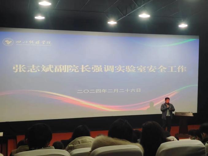 张志斌副院长讲话,强调实验室安全工作。他提出实验室安全工作悠关师生生命财产安全,需要每一位教师认真对待。教师应提前检查实验室的实验设备、卫生、消防设备,并在使用实验室的过程中,注意实验教学记录的填写规范。