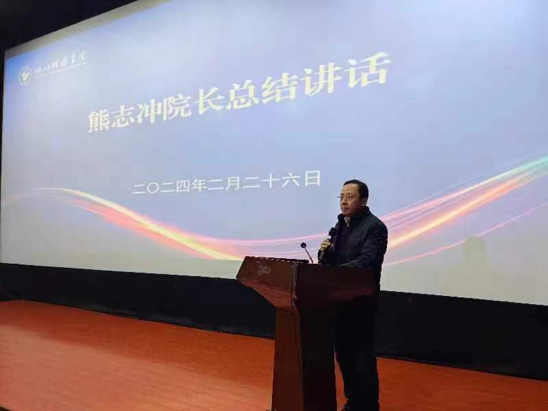 熊志冲院长讲话,对全院教师本学期的工作提出了“三个支持”“三个要求”,鼓励教师积极利用职业发展、专业建设、产教融合相关机遇,在全身心投入到课堂教学、做好毕业和就业指导工作的同时,加强师德师风修养,实现个人发展与学校发展同向同行。