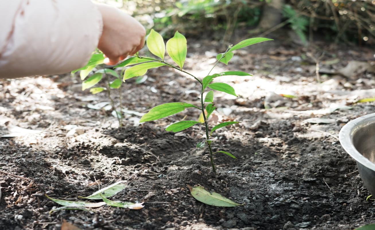 在栽种的过程中,同学们在土地中挖出了适当大小和深度的坑洞,再将树苗放入坑中,并用铲子轻轻夯实土壤,使树苗稳固。后期同学们还将制定长期的养护计划,使树苗能够健康生长。