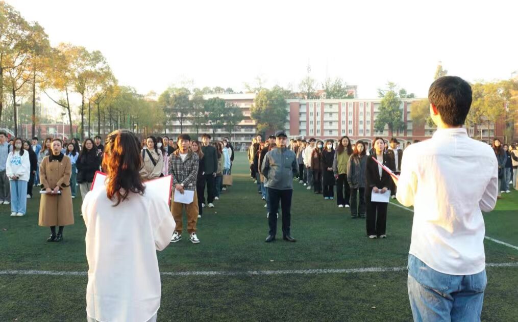 “在活力无限的大学校园,我们以青春写下独一无二的篇章。在万木吐绿的美好三月,我们相聚在此共同许下美好的心愿。博学笃行,德艺双馨。”伴随着全体师生庄严的宣誓声,升旗仪式圆满结束。