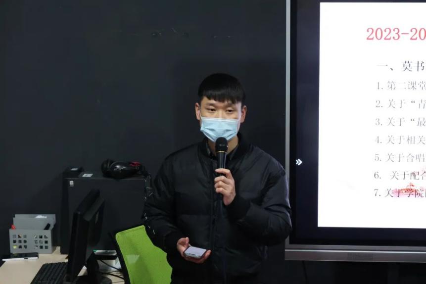 莫书记分别对“最美笔记本”评选、“二课堂系统”的操做与应用、合唱比赛队员选拔与训练、协办“网络视听产业学院成立大会”、团代表会议筹备等多项工作内容进行了进度反馈,并对仍在推进中的相关事务进行了存在问题的解决方法分享。