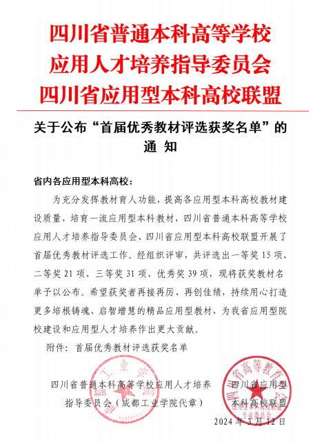 近日,由四川省普通本科高等学校应用人才培养指导委员会、四川省应用型本科高校联盟主办的首届优秀教材评选活动公布了获奖名单,我院王孟广、赵耘曼等老师主编的《融媒体纪录片创作及运营》获优秀奖。该自编教材不仅介绍了纪录片的创制方法,而且还分析了纪录片创制的底层逻辑、道德基点、法规范畴、市场规则,广泛运用于广播电视编导专业《纪录片创作》《纪实影像创作》等课程的教学,强化了对于新时代应用型人才的内涵培养。
