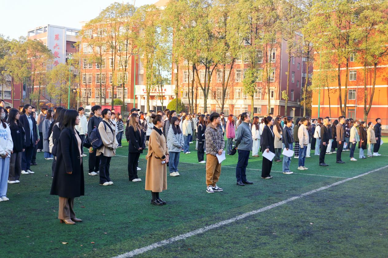 3月25日7时,四川传媒学院党委常委、学生工作部(处)长唐杰,编导艺术学院分党委书记王禹明,副院长吴建,编导艺术学院分党委副书记贺莉娅,全体辅导员老师带领300余名学生参加此次升旗仪式。