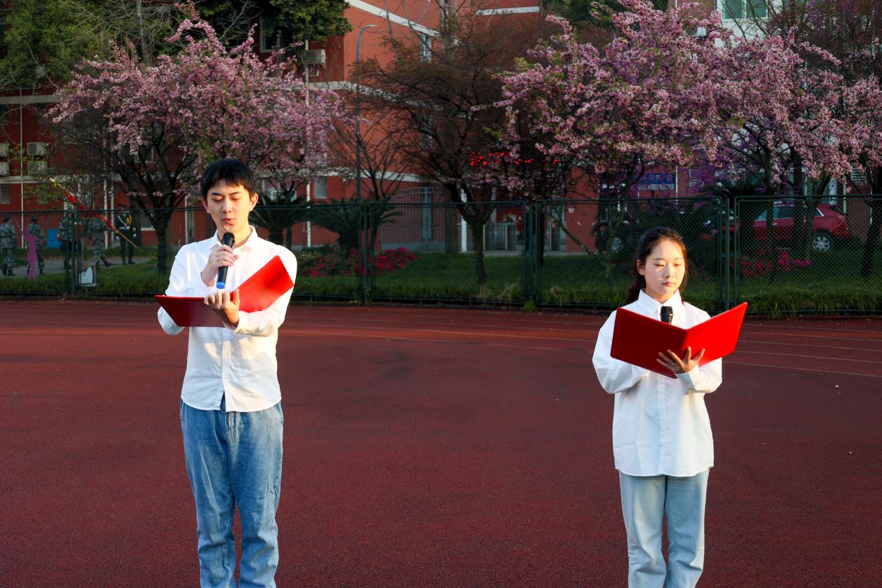 升旗仪式结束后,编导艺术学院师生以《青春》为题齐声朗诵,倡议同学们以小我之梦融中华大梦,共筑时代梦想,以卓越广编人的姿态向未来发声。全体老师和同学们进行庄严宣誓,编导艺术学院分党委书记王禹明在国旗下作了讲话,希望全体师生要牢固树立主人翁精神,有坚定的理想信念,时刻以饱满的精神状态贡献自己的青春力量。