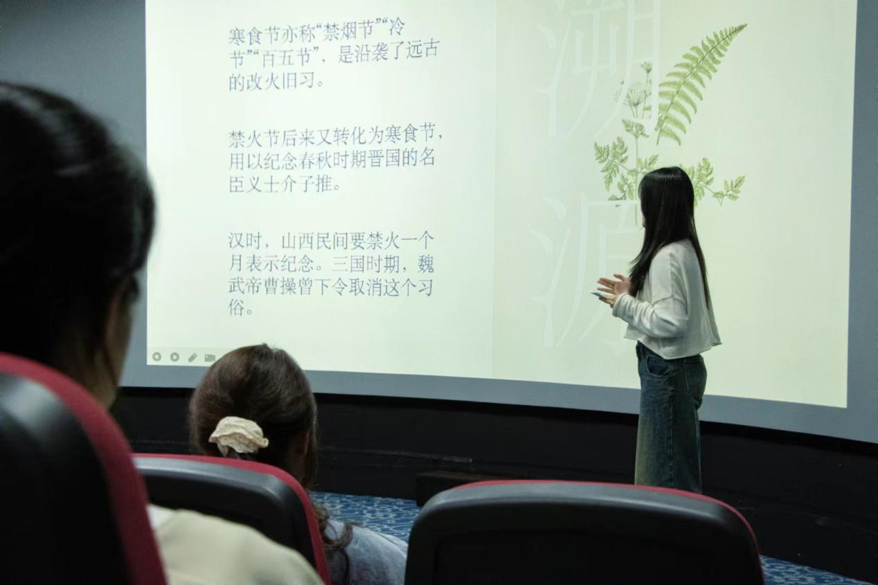 在活动现场,宣讲人员通过图片、视频等形式向同学们详细介绍了寒食节的历史背景,同学们了解到寒食节起源于中国古代的一个故事,感受到中华传统文化的魅力,增强了对传统文化的认同感和自豪感。接着,宣讲人员向同学们介绍了寒食节的习俗和食品,讲述了古代人们会在寒食节期间,禁火、禁烟以及吃寒食等习俗。同时,同学们也了解到寒食节的传统食品如寒食糕、寒食粥等,拓展了同学们的知识层面,也提高了同学们的文化自觉性和文化自信心。