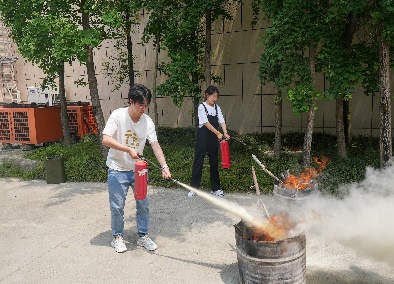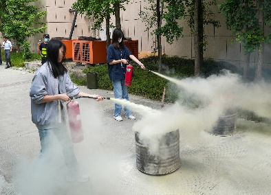消防疏散演练后,保卫处消防科王亚飞科长依次介绍了灭火器材的使用方法、疏散逃生常识、消防器材介绍和防毒面具佩戴演示。王科长示范了正确佩戴防毒面具的步骤,并详细解释了每一个步骤的重要性,让同学现场参与实操,以确保大家在紧急情况下能够正确迅速地佩戴防毒面具,保护自己免受有毒气体侵害。在灭火器材体验环节,现场师生热情高涨,纷纷动手体验使用二氧化碳灭火器和干粉灭火器,在实践中践行消防安全无小事的宗旨。