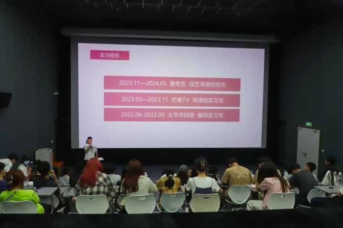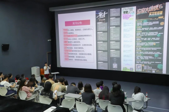 黄子健同学之前在爱奇艺主要负责的是前期策划和招商板块以及落地执行项目,在芒果tv主要负责编写沟通,通过他的分享,同学们对实习的工作有了初步的认识,包括在里面到底要做什么样的工作,如何和艺人对接。