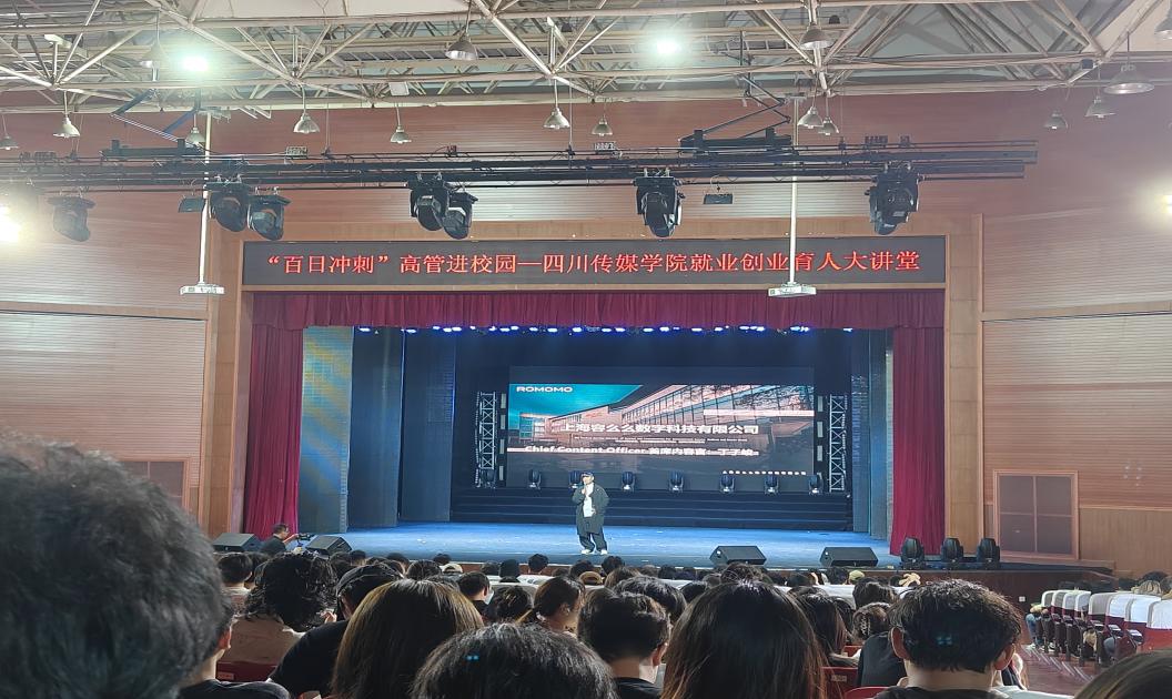 此次招聘会分为五个阶段,第一阶段,由公司 CEO --刘江宁向在座同学介绍百秋集团与容么么子公司的基本信息;第二阶段,由公司首席内容官--丁子峻深入分析和了解在座同学的专业前景和实习岗位情况;第三阶段,由公司人力资源副总裁--王薇娟介绍本次的招聘岗位;第四与第五阶段,答疑和学生投递简历阶段。