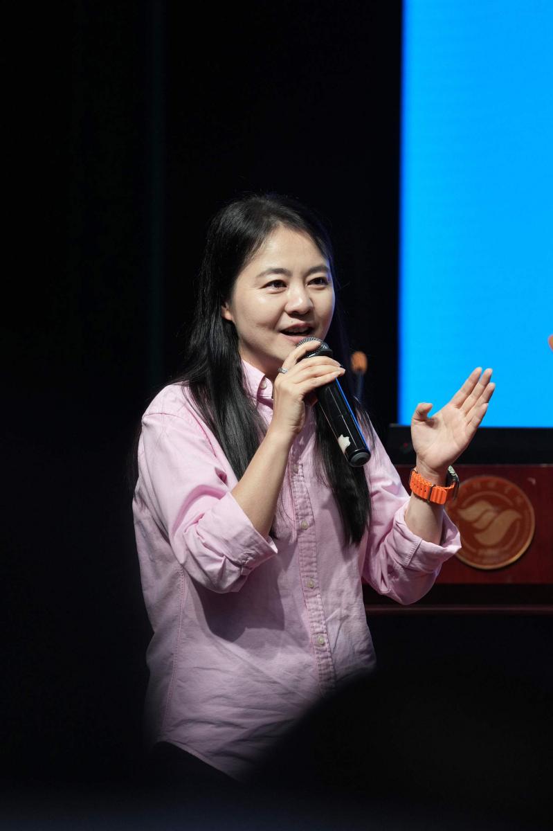 优秀教师代表徐珍妮老师从专业教师的角度为同学们介绍了课程培养目标,并与大家进行热烈互动,解读了电影制片组的工作流程,提升了同学们对电影制作的兴趣。