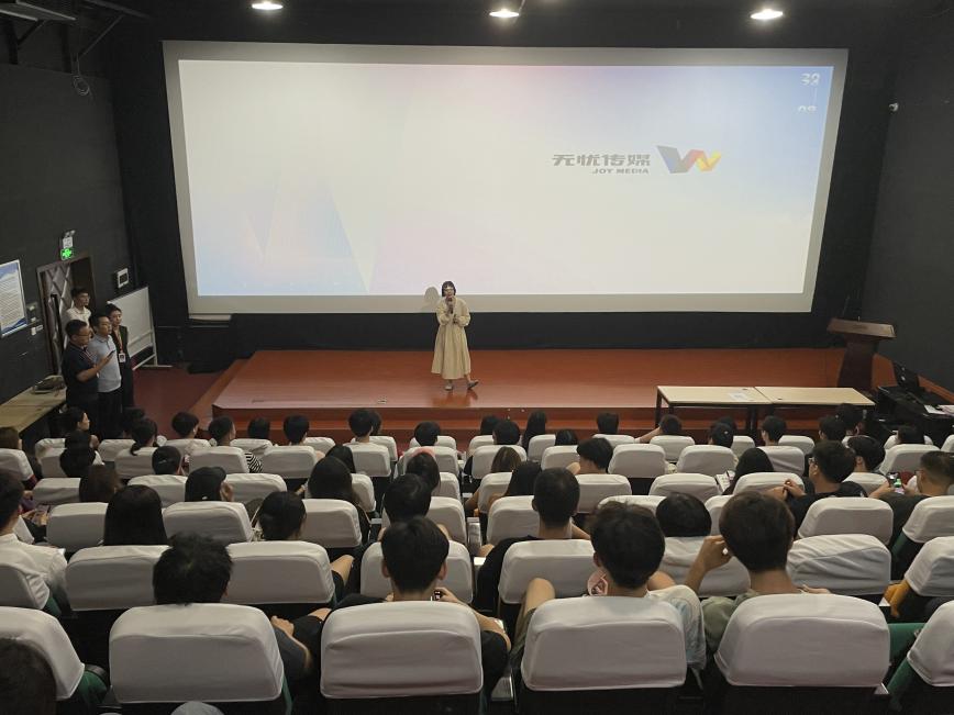 在宣讲会上,无忧传媒集团副总裁助理熊贝贝介绍了无忧传媒公司的基本概况。该公司是成立于2016年的专业互联网型经纪公司。公司采取北京+杭州双总部模式,在上海、成都、广州、长沙、武汉、海南、重庆、青岛、哈尔滨、昆明等地设立分公司或办事处。截至目前,公司签约人数超10万人,全约优质艺人超5000人,拥有众多达人主播、明星名人和全网现象级红人。公司通过“人的IP”、“内容IP”、“商品IP”三大业务基石打造一站式新媒体多维整合营销服务的战略发展计划。