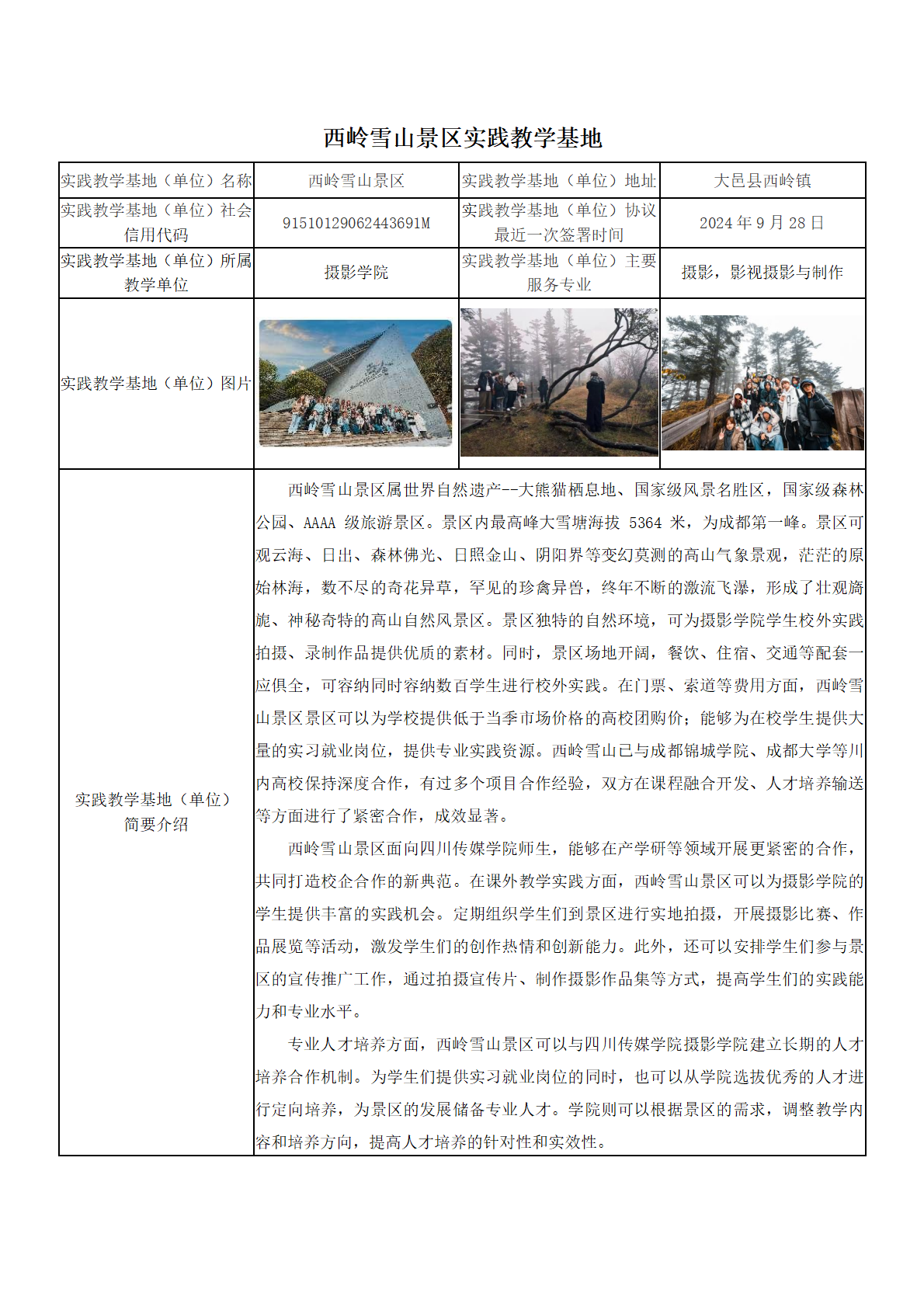西岭雪山四川传媒学院实践教学基地
